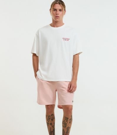 Bermuda em Algodão com Cós Elástico e Etiqueta Aplicada