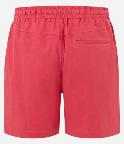 Bermuda masculina, confeccionada em algodão com linho, cós elástico, cordão para ajuste, bolsos e sem estampa.