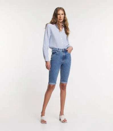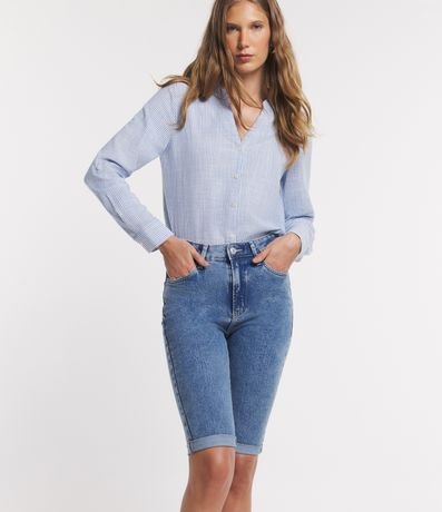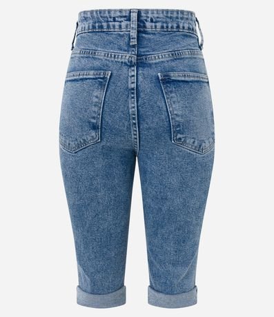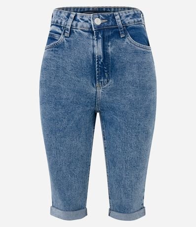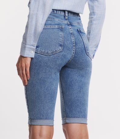 Ref: Bermuda ciclista em jeans com bolsos e barra dobrada.