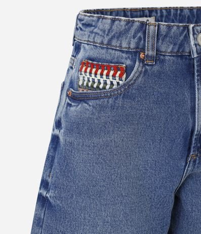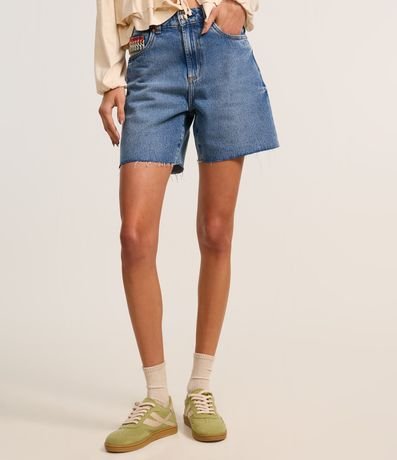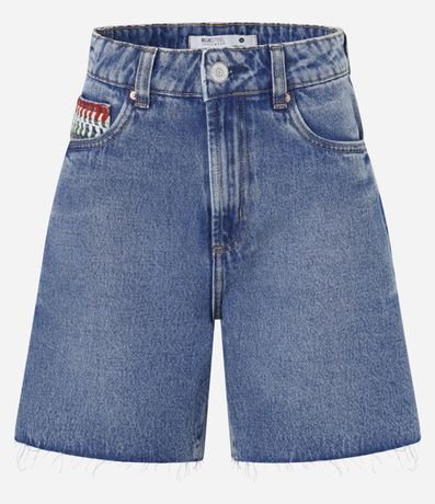 Bermuda em Jeans com Bordado de Tricô no Bolso