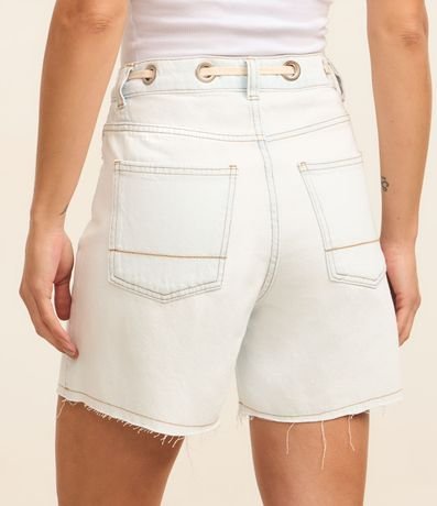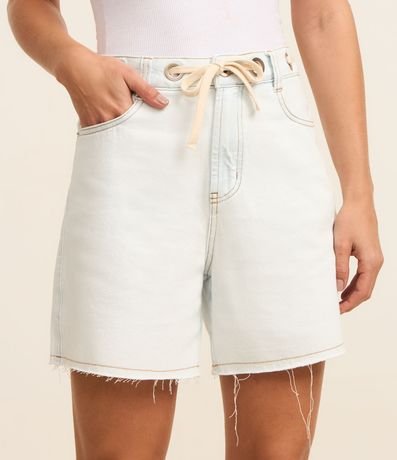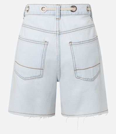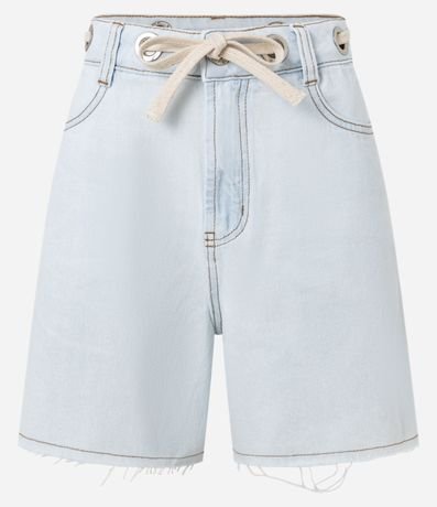 Ref: Bermuda jeans confeccionada com algodão BCI. A peça tem ilhós e cordão para amarração no cós.