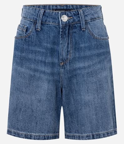 Bermuda confeccionada em jeans, com passantes no cós, bolsos e fechamento tradicional. Este produto possui material mais sustentável em sua composição, sendo ambientalmente mais responsável.