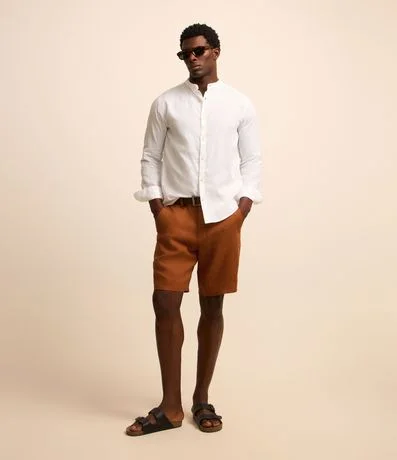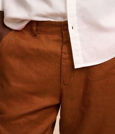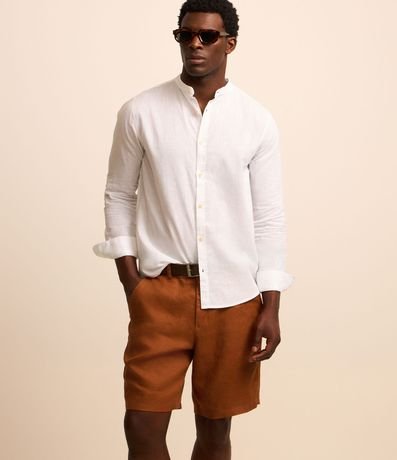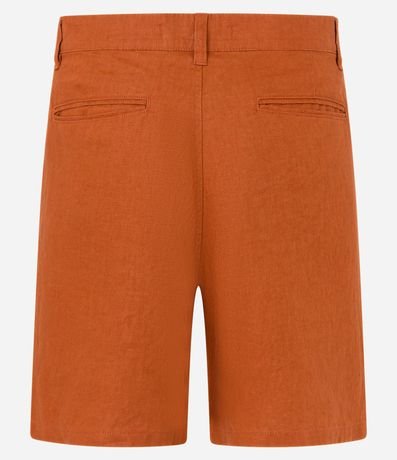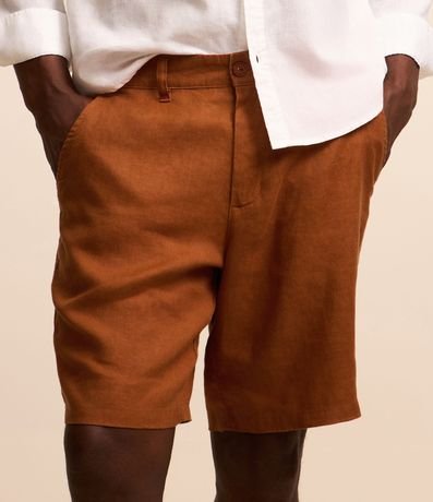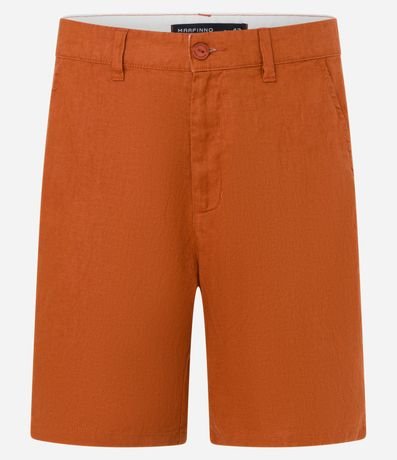 Ref: Bermuda masculina, confeccionada em linho, com passantes no cós, abotoamento frontal e superfície sem estampa.