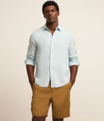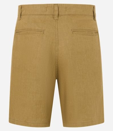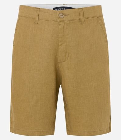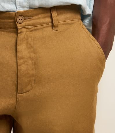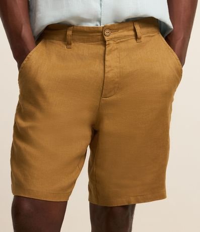 Ref: Bermuda masculina, confeccionada em linho, com passantes no cós, abotoamento frontal e superfície sem estampa.