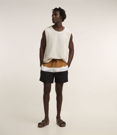 Bermuda em Microfibra com Cós Elástico Bloco de Cores e Textura