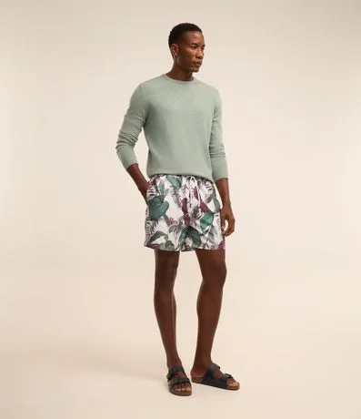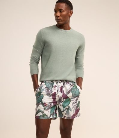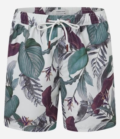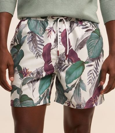 Ref: Bermuda masculina em microfibra com cós elástico e cordinha para ajustes, bolso e estampa floral.
