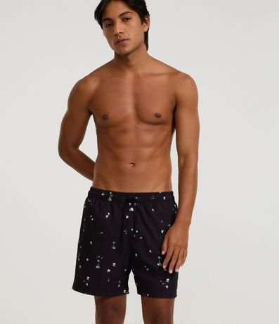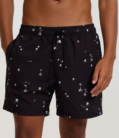 Ref: Bermuda leve confeccionada em microfibra. Possui cós elástico, com cordão ajustável, bolso e estampa de caveirinhas.