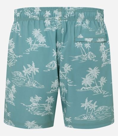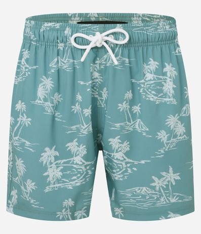Ref: Bermuda masculina confeccionada em microfibra, cós elástico com cordão, bolso e estampa de coqueiros e mar.