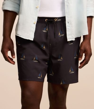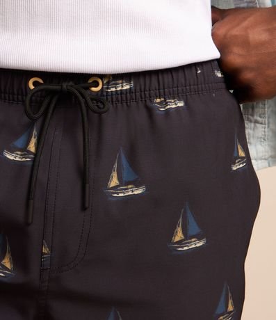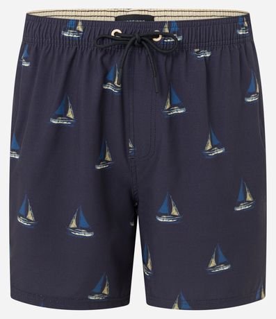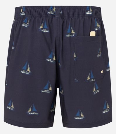 Ref: Bermuda masculina, confeccionada em microfibra, cós elástico, cordão para ajustes e bolso. Peça com estampa de mini barcos.