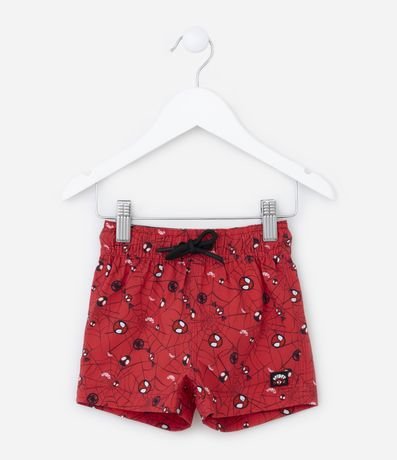 Ref: Bermuda infantil em microfibra, com cós elástico, cordão para ajuste, bolso e estampa do Homem Aranha Spidey.