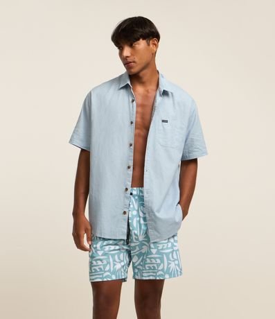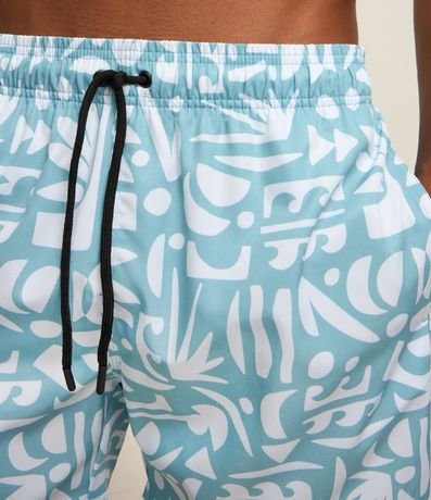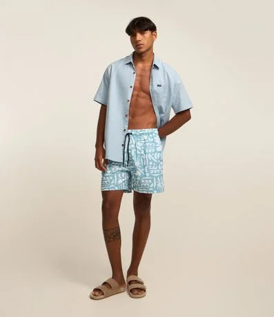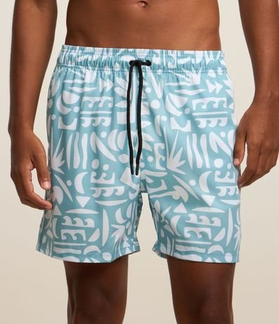 Ref: Bermuda masculina confeccionada em microfibra com cós elástico, cordinha para ajustes e estampa étnica de ícones abstratos.