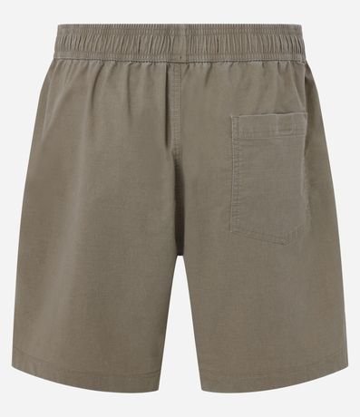 Ref: Bermuda masculina, confeccionada em material mais sustentável, com cós elástico, cordão para ajuste, detalhes na costura e etiqueta. Peça com textura lavada e bolso.