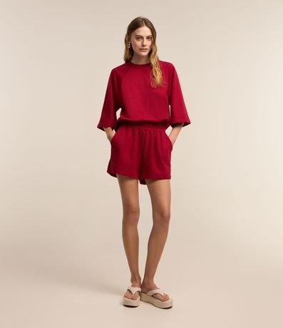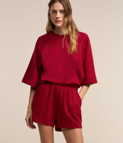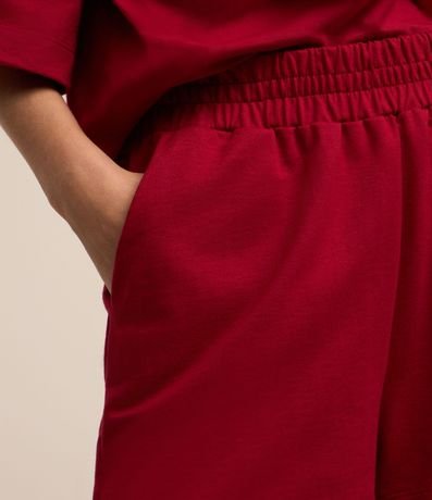 Bermuda feminina, confeccionada em moletom, com cós médio elástico.
