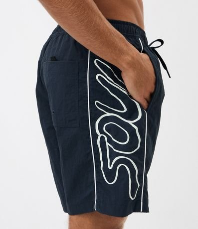 Ref: Bermuda masculina, no modelo de banho. Possui cós elástico, cordão ajustável, estampa Soul na lateral e bolso.