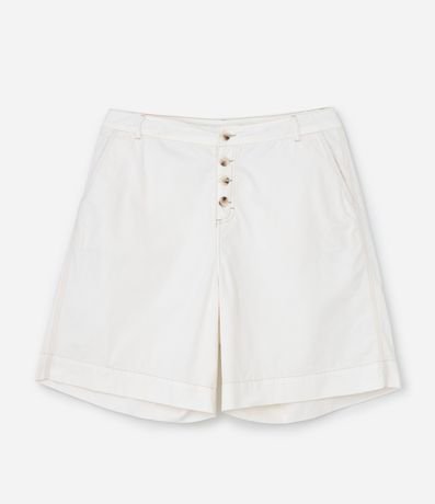 Ref: Bermuda feminina confeccionada com algodão regenerativo mais sustentável. Possui passantes no cós, botões a vista, bolsos e detalhes de pespontos aparentes.
