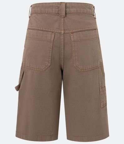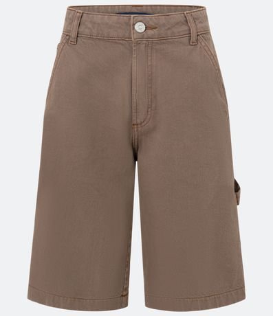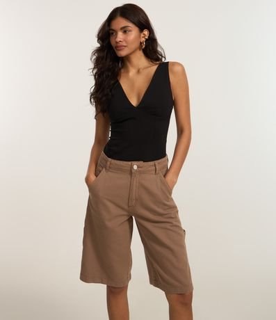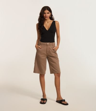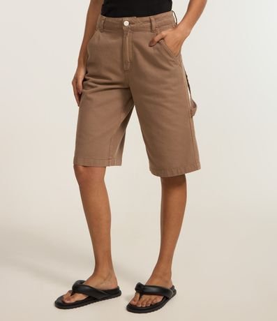 Ref: Bermuda feminina confeccionada em sarja de algodão certificado bci com boas práticas ambientais, peça com cintura média, cós com passantes, fechamento tradicional bolsos e bolsos carpinteiro.