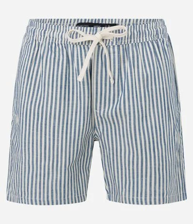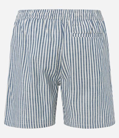 Ref: Bermuda masculina em sarja de algodão certificado bci confeccionada em boas praticas ambientais, produto com cós elástico, amarração, estampa listrada e bolsos.