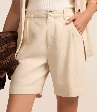 Ref: Bermuda com cintura alta, estilo regular com passantes no cós, confeccionada em sarja e bolsos laterais.