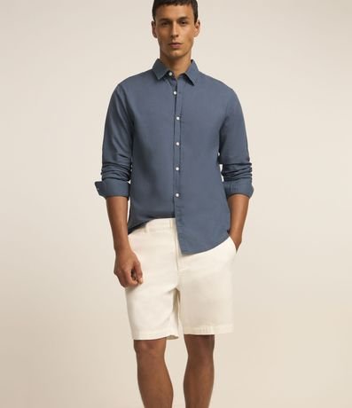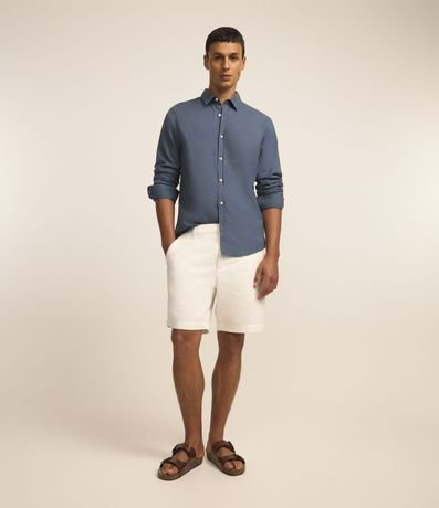 Bermuda em Sarja com Textura e Cós Fixo