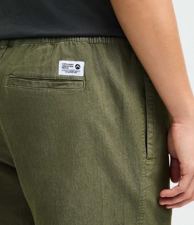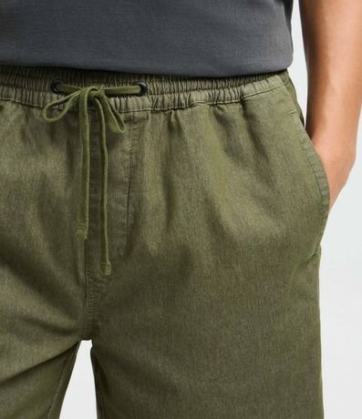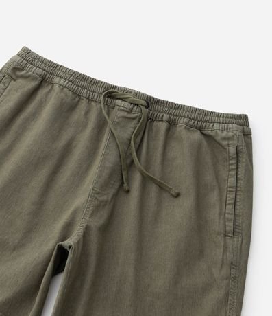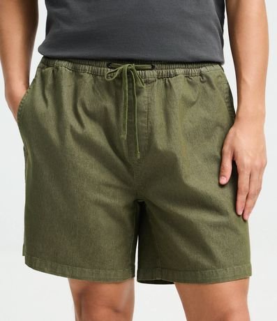 Ref: Bermuda em sarja texturizada com cós elástico e ajuste por cordão. Possui bolsos laterais e bolso traseiro aplicado, oferecendo praticidade e conforto para o dia a dia. Modelo versátil para compor looks casuais, confeccionado em algodão de certificado BCI.