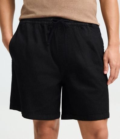 Ref: Bermuda em sarja texturizada com cós elástico e ajuste por cordão. Possui bolsos laterais e bolso traseiro aplicado, oferecendo praticidade e conforto para o dia a dia. Modelo versátil para compor looks casuais, confeccionado em algodão de certificado BCI.
