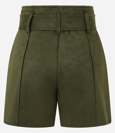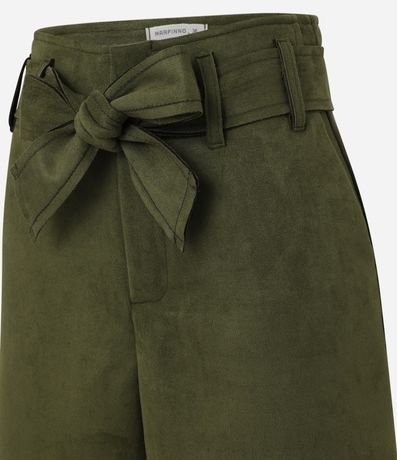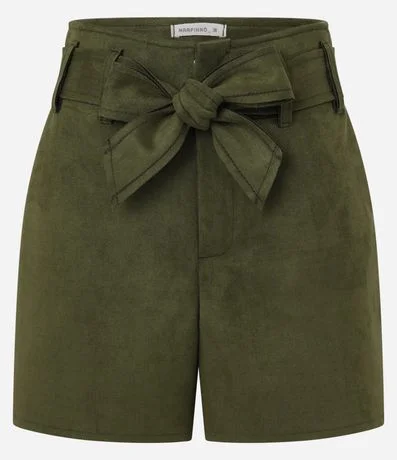 Ref: Bermuda confeccionada em suede com amarração na cintura e detalhe de laço frontal. Peça cintura media e comprimento curto.