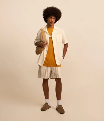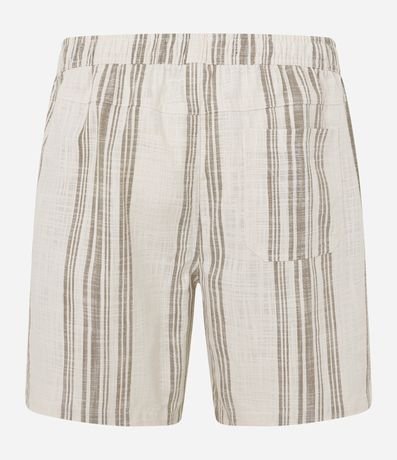 Ref: Bermuda masculina, confeccionada em material mais sustentável, cós elástico e bolso. Peça contém estampa em listras verticais que promovem leveza para o look.