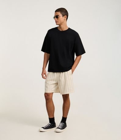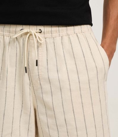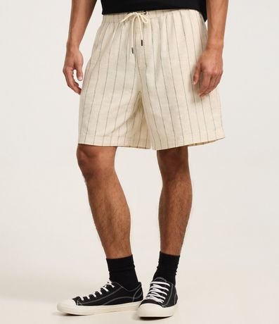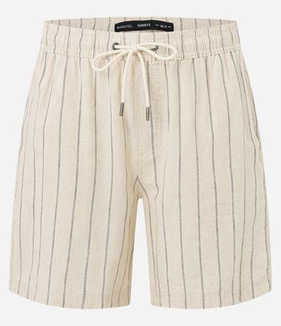 Ref: Bermuda masculina confeccionada em tricoline mais sustentável. Possui cós elástico, com cordão ajustável, bolso e estampa de listras rústicas.