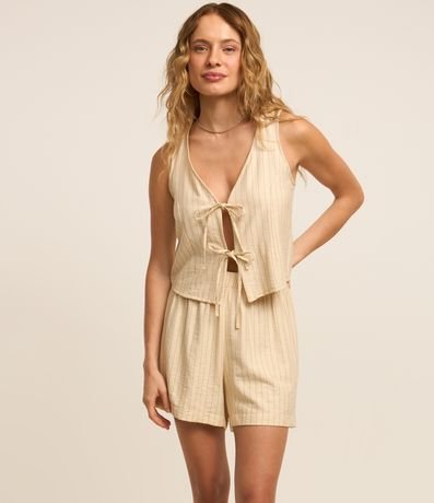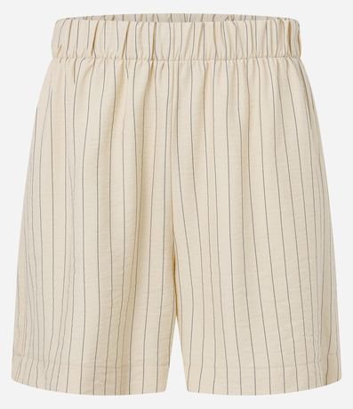 Ref: Bermuda regular confeccionada em tricoline, cós elástico e com listrinhas finas.