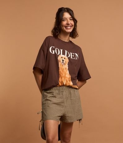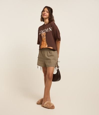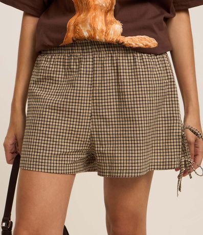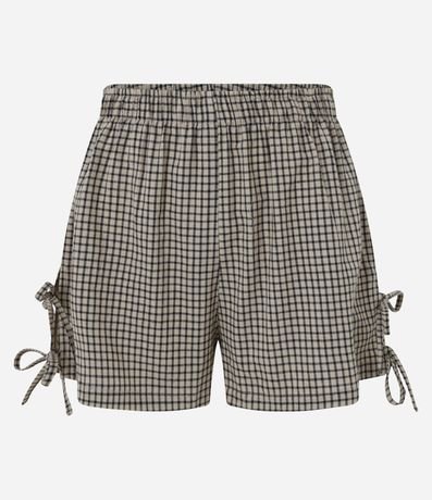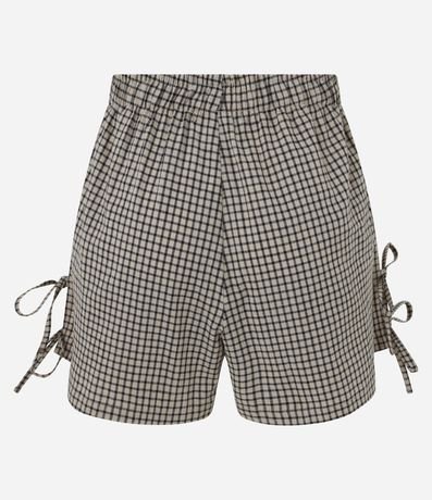 Ref: Bermuda confeccionada em tricoline com cós elástico, estampa xadrez e lacinhos laterais.