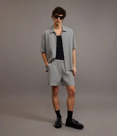 Ref: Bermuda masculina confeccionada em viscose mais sustentável. Possui cós elástico, com cordão interno ajustável, bolso e textura em relevo.