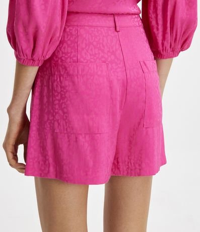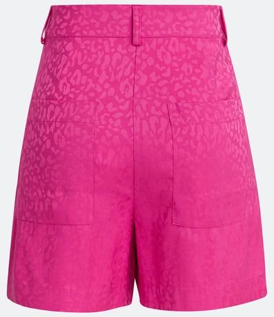 Ref: Bermuda feminina, em viscose, botão diferenciado, pregas frontais e estampa animal print oncinha.