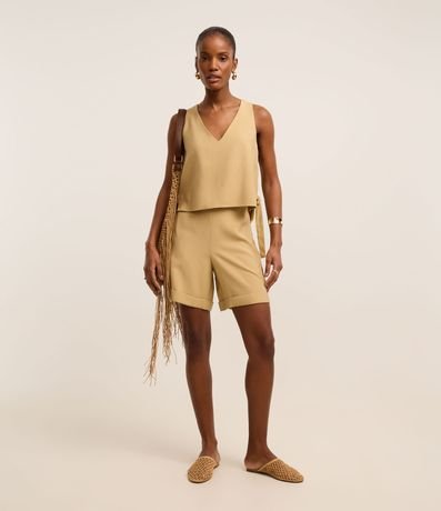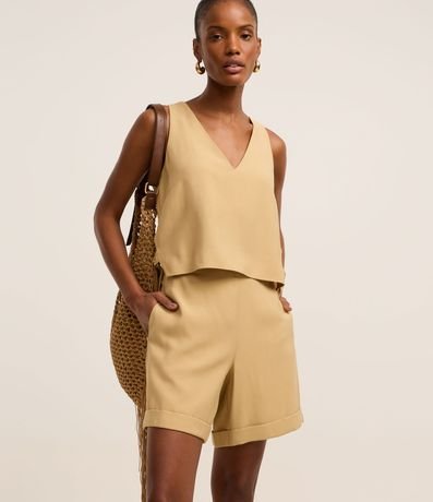 Bermuda em Viscose Twill com Barra Dobrada
