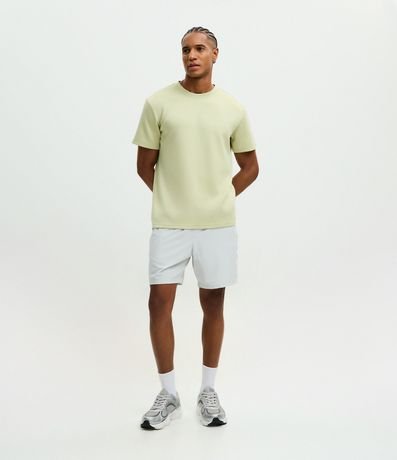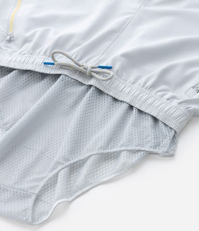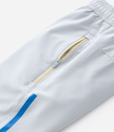 Ref: Bermuda esportiva masculina, com cós elástico, cordão para ajuste, bolsos com zíper, detalhes contrastantes e blocos de cor.