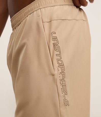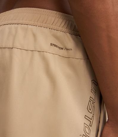 Ref: Bermuda esportiva, com cordão interno e cós elástico, bolsos e lettering refletivo na lateral.
