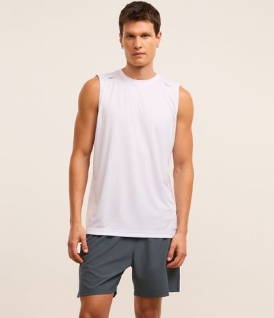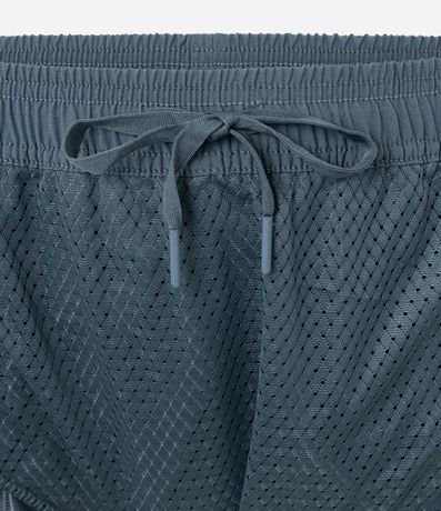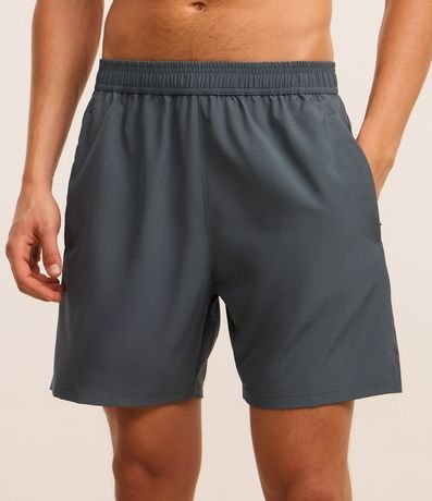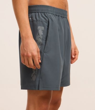 Ref: Bermuda esportiva masculina, confeccionada em poliéster. Possui cós elástico, cordão interno ajustável e estampa localizada refletiva.