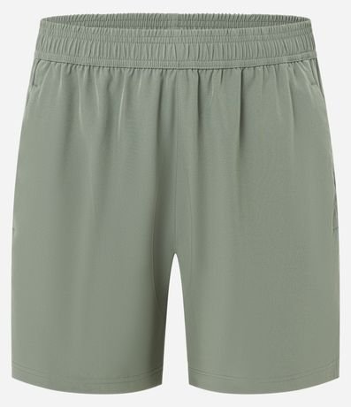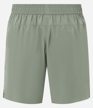 Bermuda esportiva masculina, confeccionada em poliéster. Possui cós elástico, cordão interno ajustável e estampa localizada refletiva.