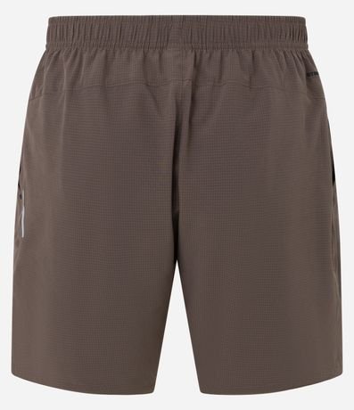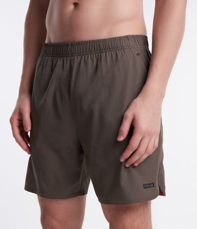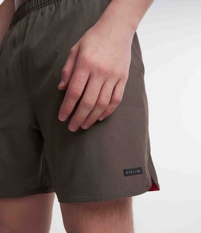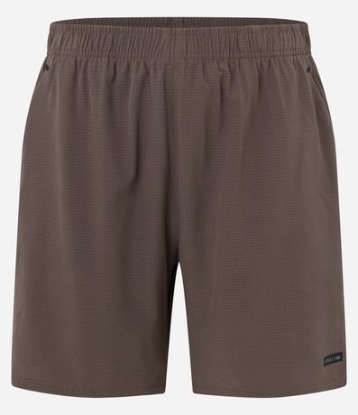 Bermuda esportiva masculina, com cós elástico, cordão para ajuste, bolsos, textura, etiqueta aplicada na barra e refletivos laterais.
