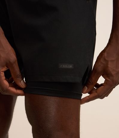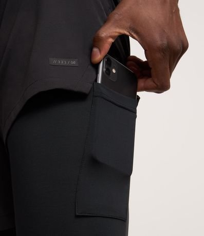 Bermuda esportiva 2 em 1 com short de compressão interno para máximo suporte e conforto. Possui bolso interno para celular, ideal para treinos e corridas