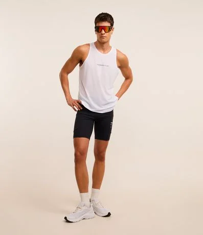 Bermuda masculina confeccionada em microfibra, com bolsos para celular, ideal para treinos e corridas, estampa lettering e compressão para máximo suporte e conforto.