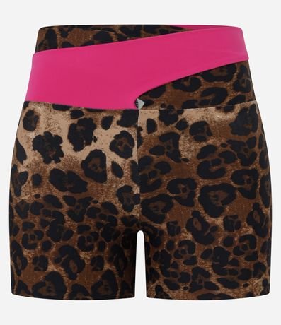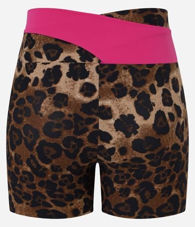 Ref: Bermuda esportiva feminina em microfibra com estampa animal print e cós colorido.