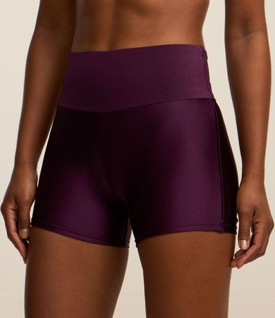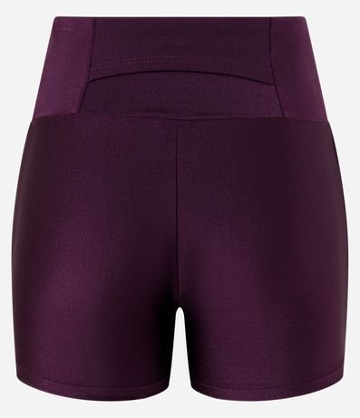 Ref: Bermuda esportiva de cós alto com elástico e recorte dianteiro pespontado. Confeccionada em microfibra leve.