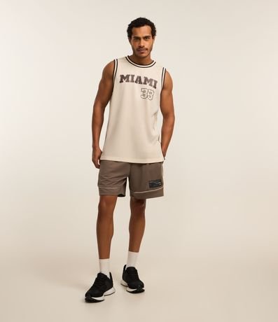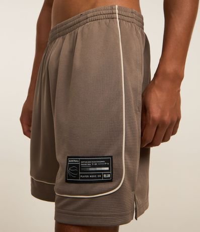 Ref: Bermuda esportiva masculina em tecnologia dry. Possui cós elástico, com cordão interno, ajustável, etiqueta aplicada com estampa de basquete, friso contrastante e furinhos para maior respirabilidade.