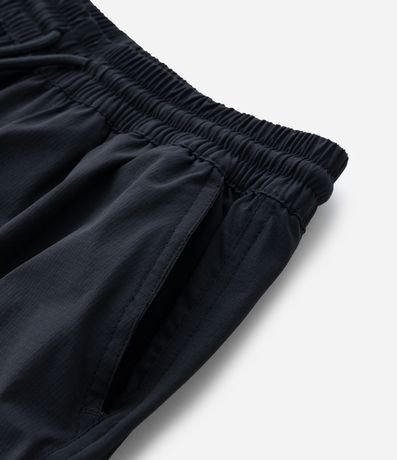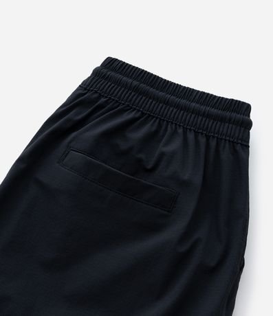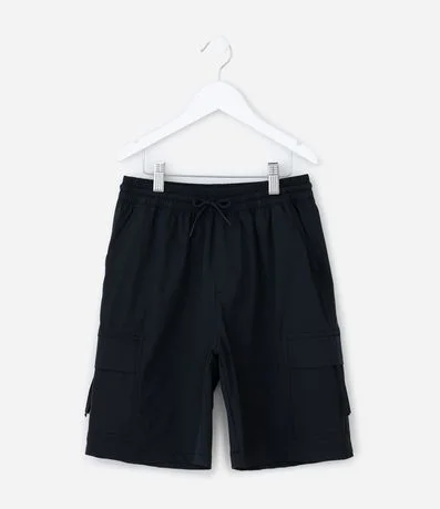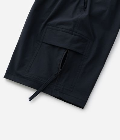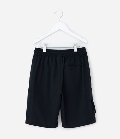 Ref: Bermuda infantil confeccionada em poliamida, com amarração no cós e bolsos cargo com zíper.