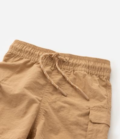 Ref: Bermuda infantil confeccionada em microfibra, com elástico e amarração no cós. Possui bolsos cargo nas laterais.