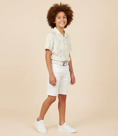 Ref: Bermuda infantil confeccionada em sarja com passantes e cinto de textura trançada afivelado na cintura com bolsos.