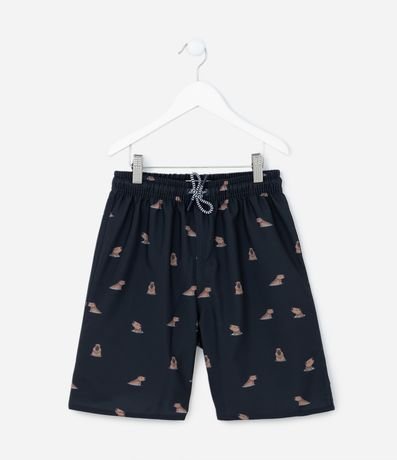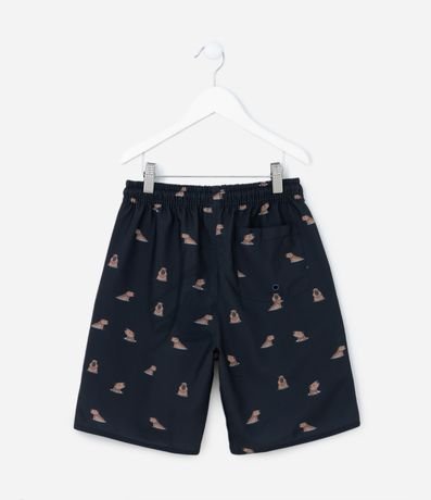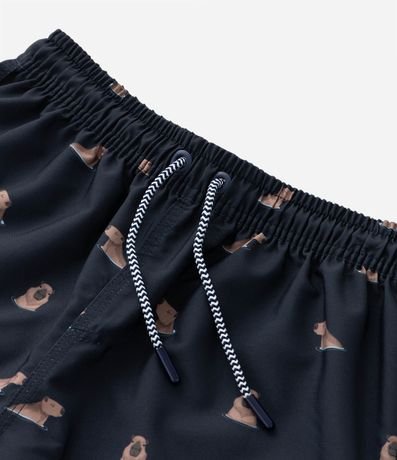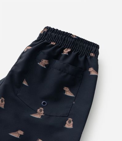 Ref: Bermuda infantil em microfibra, com cintura elástica, cordinha para amarração, bolsinho na parte de trás e estampa divertida com mini capivaras.