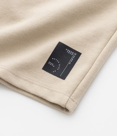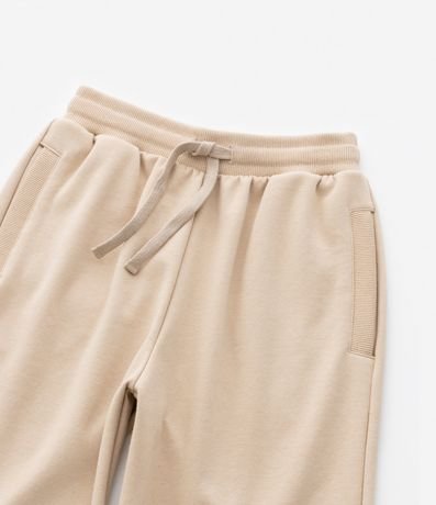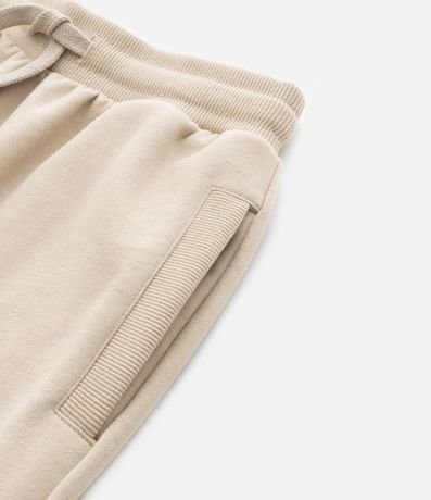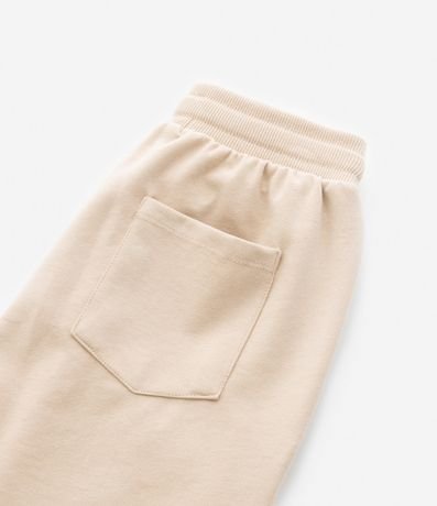 Bermuda infantil confeccionada em tecido moletom, com cós elástico, cordão para ajuste, bolsos e etiqueta aplicada na barra.