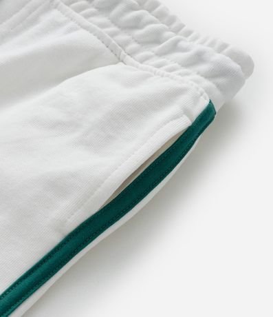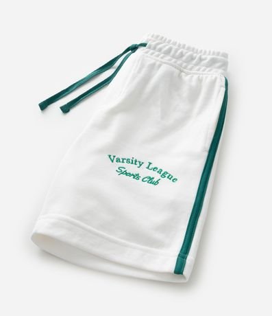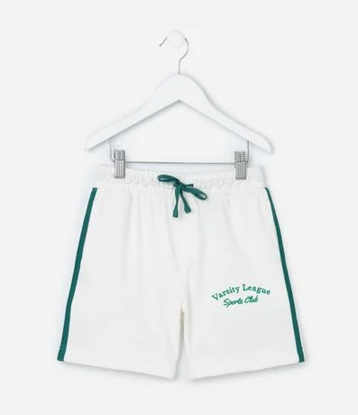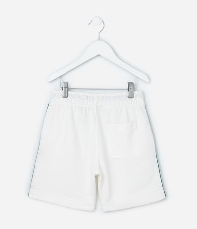 Ref: Bermuda infantil confeccionada em moletom sem forro fleece, com cós elástico, amarração, lettering na perna e listras laterais contrastantes.