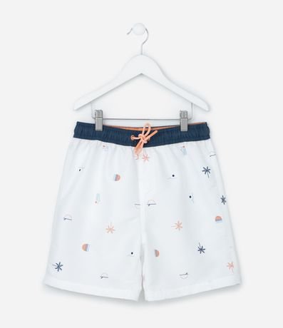 Ref: Bermuda infantil confeccionada em poliéster, possui cós elástico, com cordão ajustável, contrastantes, bolso e estampa de mini ícones.